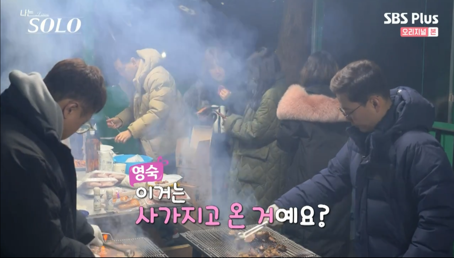 고기를 굽는 나는 솔로 7기들 영철의 세심함이 돋보입니다.