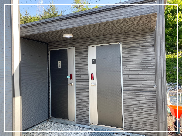 중앙에 있는 건물이 관리실과 세 척실이고 6번 사이트 옆이 남, 여 구분되어 있는