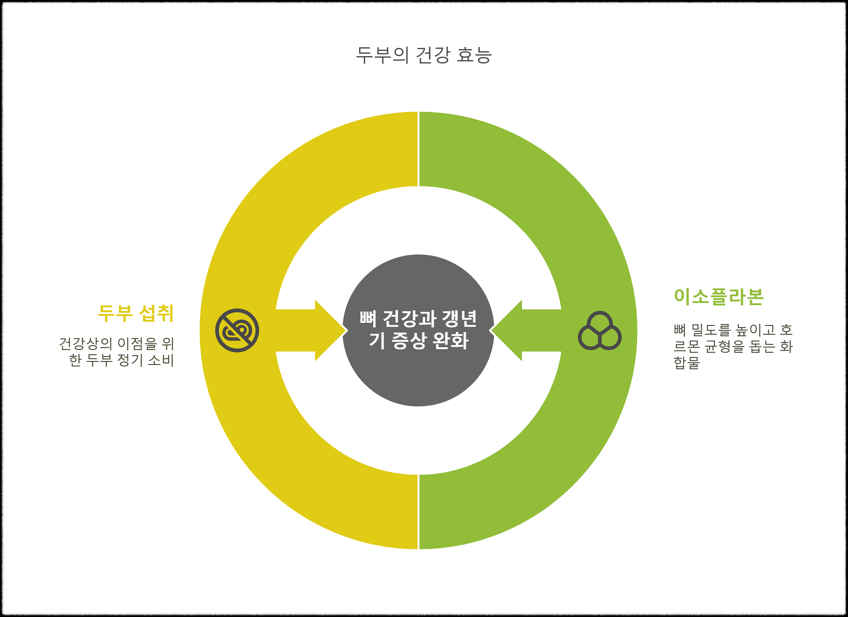 • 두부에 포함된 이소플라본 성분이 골밀도를 높이고, 여성호르몬을 보충해 줍니다.