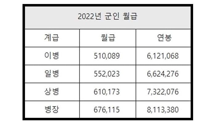 그럼 2022년 우리 병사들은 얼마를 받고 있었는지 알아보겠습니다.