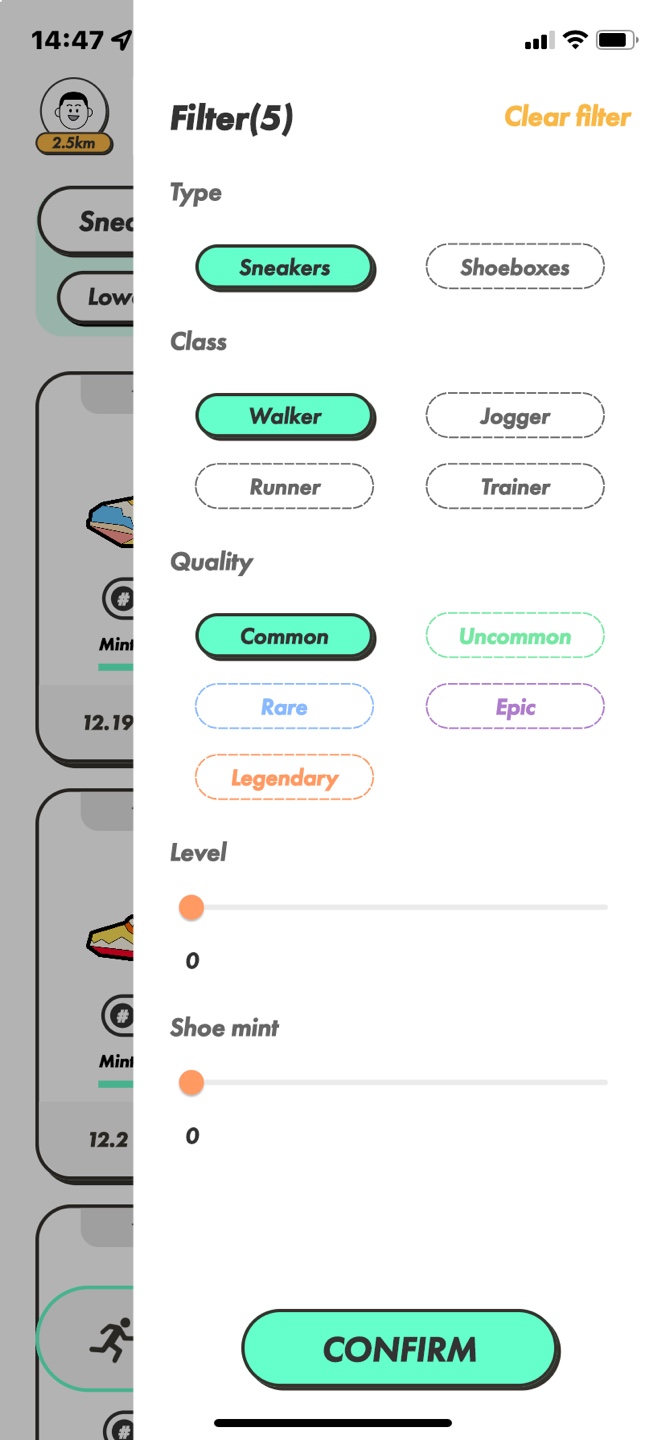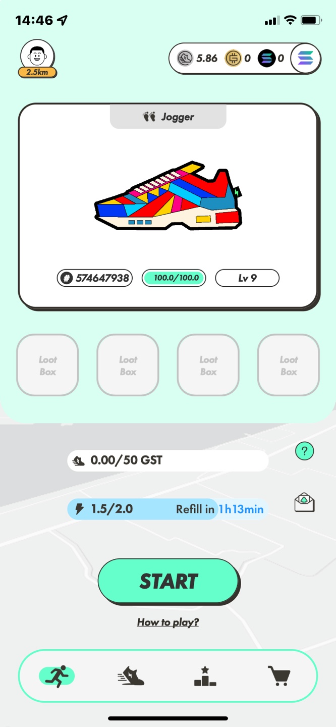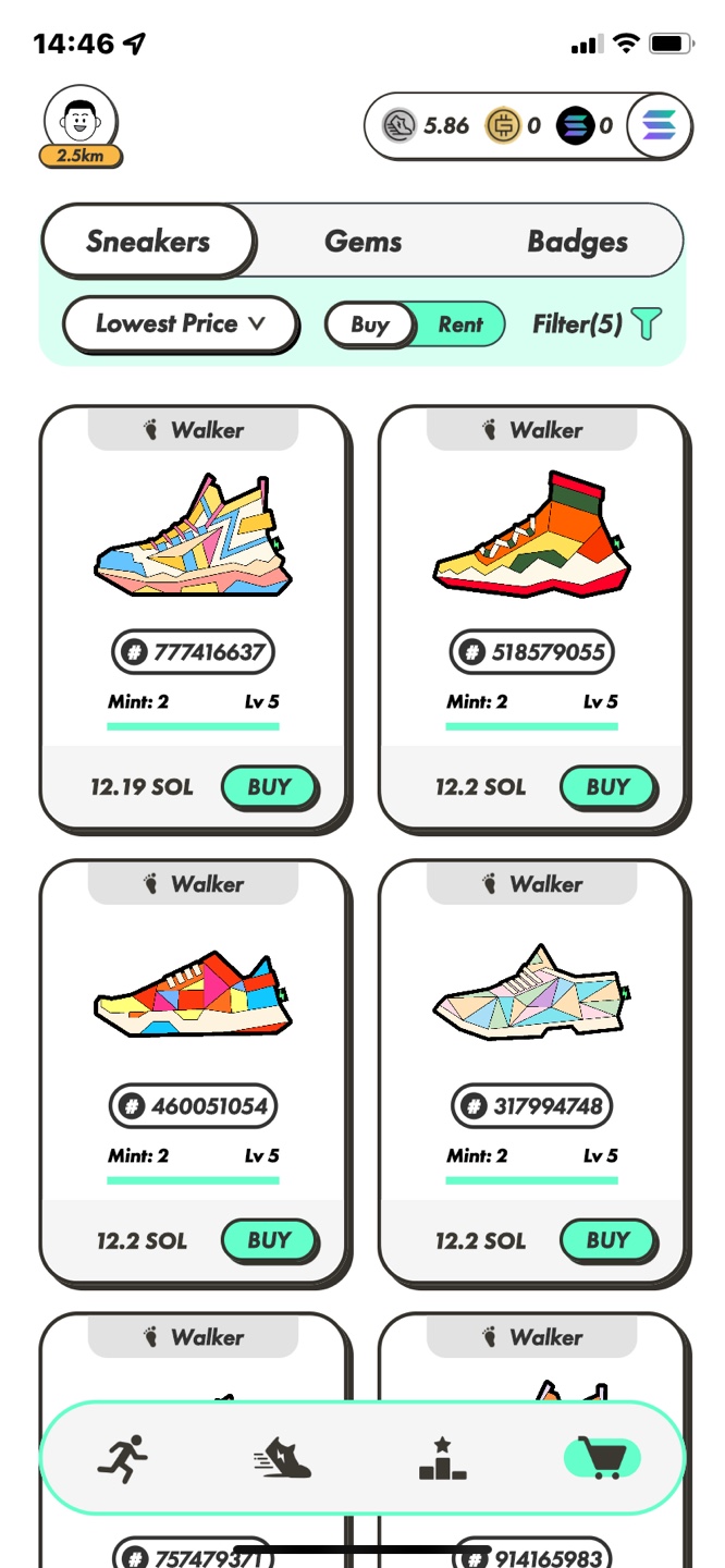 운동화 종류에 따라 게임 토큰 GST를 벌어들이는 양이 달라집니다.