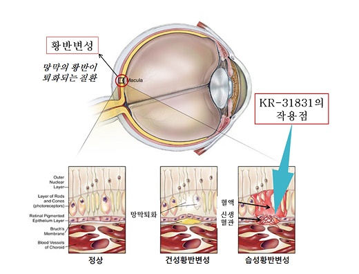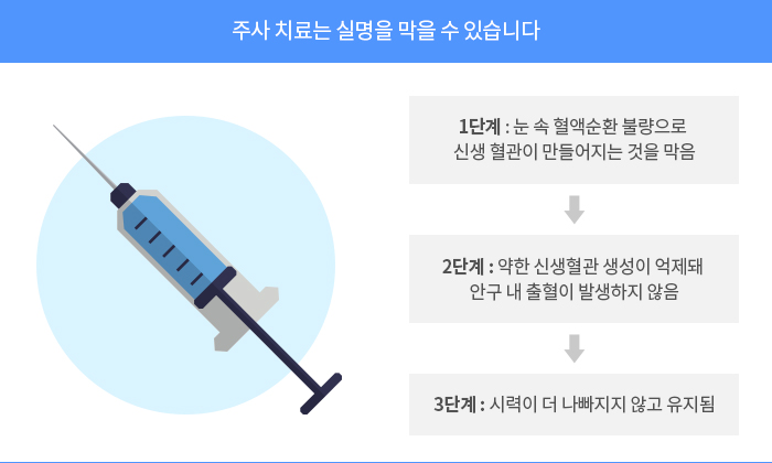 망막에 혈관이 비정상적으로 발달해서 황반을 손상시킬때 발생한다 합니다.