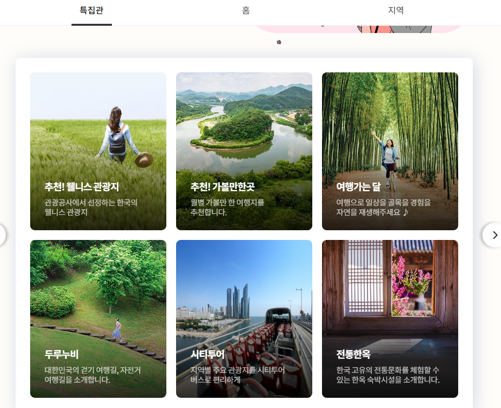 대한민국 구석구석 에서 홈 옆에 특집관 을 누루시면